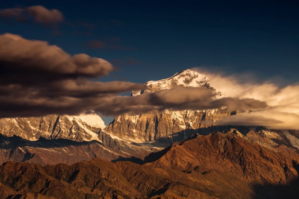 Dhaulagiri (8,167m) Big stone of Yeti, whose name means white Mountain, is the seventh highest Mountain in the world. It is an enormous Himalayan massif, located in north central Nepal. After its discovery by the western world in 1808, it replaced Ecuador’s Chimborazo (20,561 ft) as the postulated highest mountain in the world. It maintained this standing for nearly 30 years, until the discovery of Kanchenjunga, which was then falsely believed to be the world’s highest mountain. Dhaulagiri’s crest stretches for 30 miles, lending structure to an otherwise tangled topography of twisting ridges, glaciers, and ice falls, along the main crest, several pyramid-shaped peak rise. Four of these summits, numbered from east to west, rise above 25,000 feet. In 1960, the Swiss/Australian expedition who first reached the summit did so despite their airplane having crashed Suring the approach. This was the first Himalayan climb supported by an airplane, although the plane was subsequently abandoned on the mountain.
