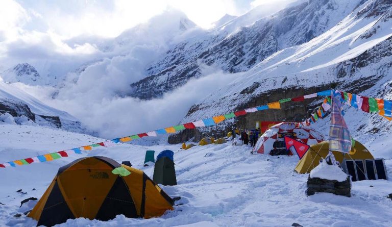 Enter the glacier, pass through the Chhonbarban Glacier, and revel in the views of Tukuche Peak. Reach the Italian Base Camp for a night surrounded by the grandeur of the Himalayas.